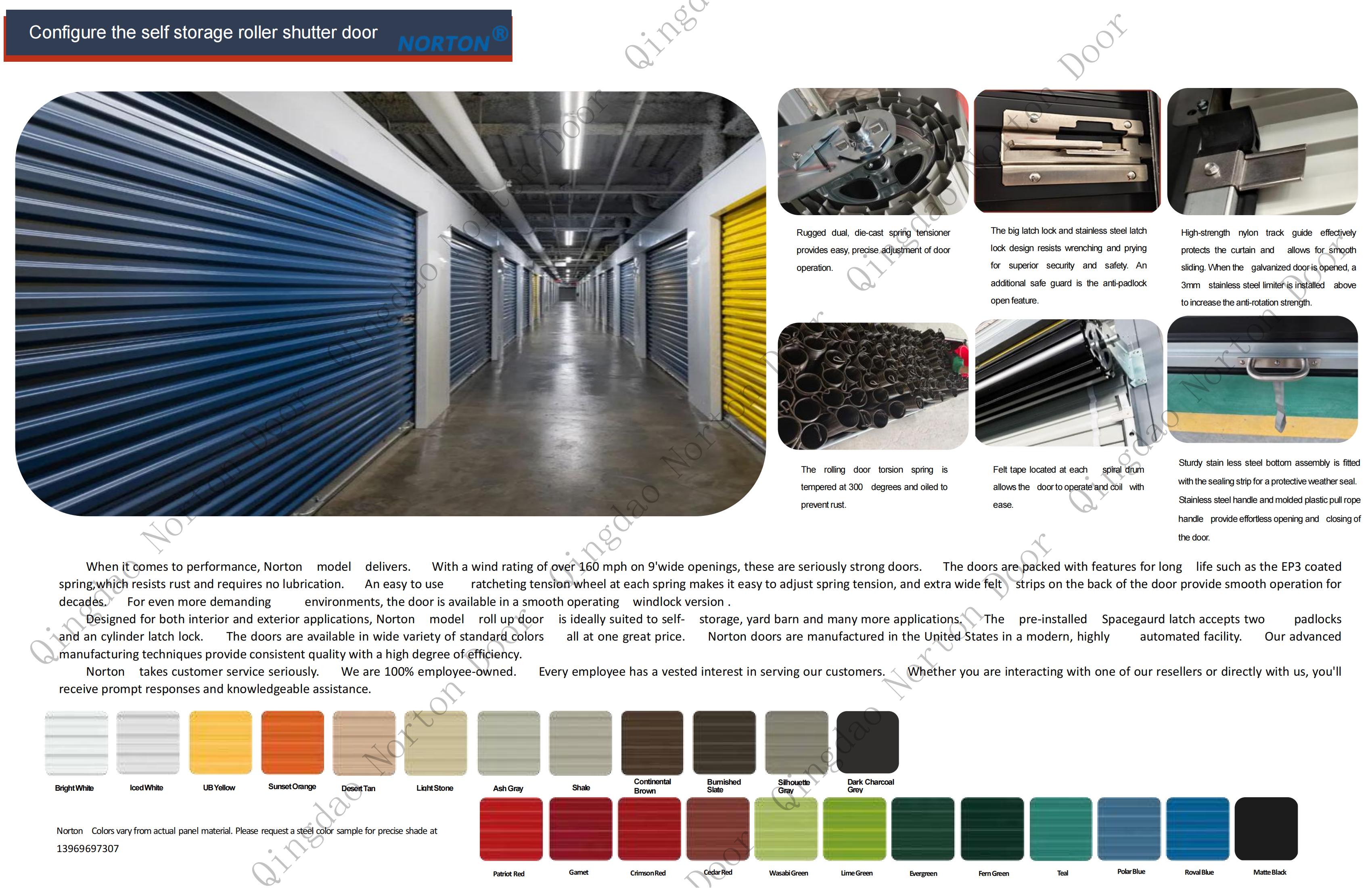 Qingdao Norton को कस्टम कन्फर्मेन स्वयं स्टील स्टिलिंग स्टिलिंग स्ट्रिलिंगले स्थिरता र सुरक्षा को लागी शक्ति दबाव प्रदान गर्दछ। नयाँ विकसित ह्यान्ड-गाईडर्ड चेन ग्रेरी ग्रेरीले सजिलो उचाई र बन्द गर्न सजिलो छ। प्रयोगकर्ताहरूको ढोका खोल्ने आयामहरूमा अनुकूलित, यी ढोकाहरूले एक उत्तम फिट र इष्टतम मुहर सुनिश्चित गर्दछ। एन्टि-टम्पर, वेस्ट्रोपोजिंग (वर्षा, ओसिलो, चिसो, चिसो, चिसो, चिसो, चिसो, मशास्त्रहरू बमोजिम विभिन्न उपस्थिति र प्रदर्शन कायम राख्दछ।