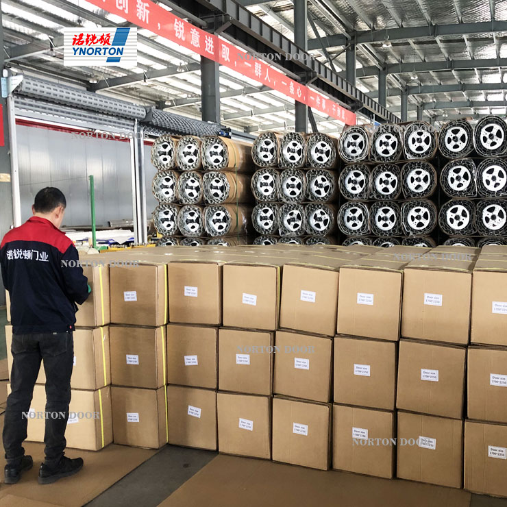 भित्री तह संरक्षण: बबल र्यापको एक तह यसको प्रत्येक पट्टि राखिएको छरोलर शटर ढोकाजहाँ अन्त क्याप्स स्थापना गरिएको छ, र ढोका त्यसपछि एक प्रारम्भिक बॉल्डरिंग प्रभाव प्रदान गर्न बबल र्यापको साथ रोल हुन्छ।